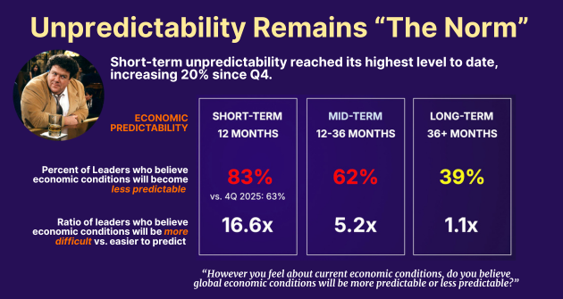 - While views on the global economy have stabilized, pessimism at the company level has doubled. Leaders see less external volatility - but more internal pressure.